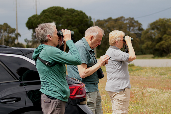 Er twitteren Europese kanaries en koereigers scharrelen tussen het lange gras. Een Iberische klapekster en een bijeneter zitten op de uitkijk op een draad en een ooievaar komt statig voorbijvliegen. Een leuke plek en ook al leuke soorten voor de vogellijst, die Dick digitaaal beheert. |