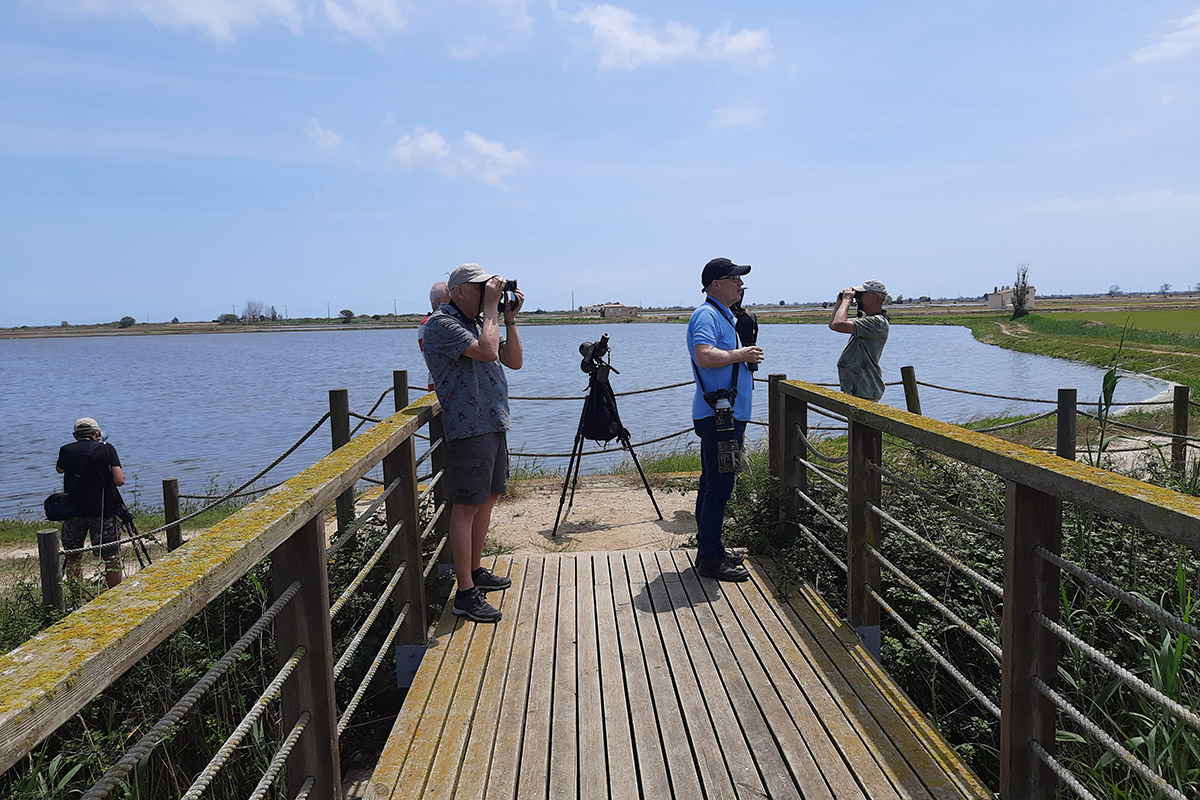 Bij Lo Goleró zien we een fantastisch schouwspel met broedplaatsen van zo’n 30 zwarte ibissen, flamingo's, kwakken en zilverreigers. Er vliegen ook purperreigers met nestmateriaal en een ralreiger. |