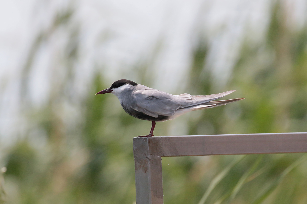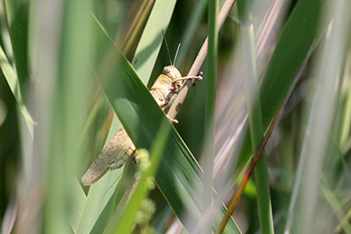 Even verderop parkeren we de auto’s en gaan lopend verder. Naast de auto zit een grote Egyptische sprinkhaan en in de rietpluimen zien we een grasmus. In het riet is de grote karekiet met meerdere exemplaren aanwezig. We lopen naar een platform en onderweg ziet Sander een purperkoet in het riet scharrelen. Bij de grote plas zien we naast verschillende zilverreigers een ralreiger, die ik zelf voor dit moment mis. Twee krooneenden zijn kortstondig op het water te bewonderen en een leuke waarneming zijn de twee mooie dunbekmeeuwen. |