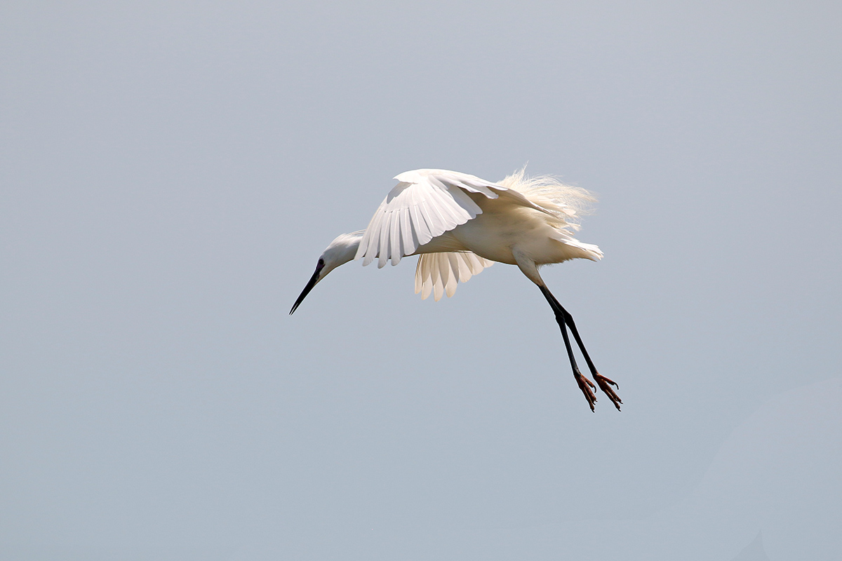 Een kleine zilverreiger gaat landen in het gebied. |