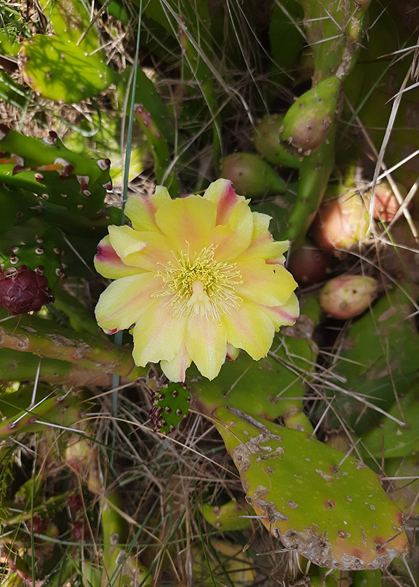 Als we even later langs de Middellandse zee staan ontdekken we dwergsterns en visdieven en zo wordt de lijst steeds langer. Een koninginnepage en een vermoedelijke zuidelijke keizerlibel verkennen de berm en wij zien een grote groep van wel 30 witwangsterns in een rijstveld. Ook in de berm, enorme cactussen met mooie gele bloemen en rode vruchten. |